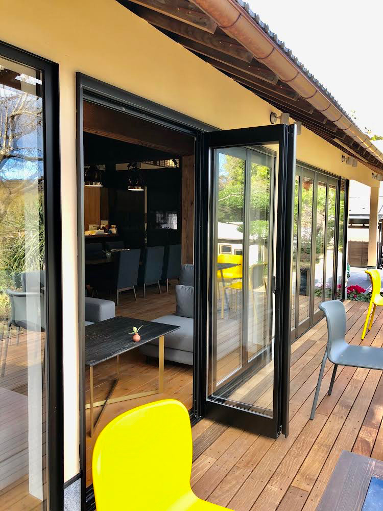 今にも窯からパンの香りが漂ってきそうな雰囲気と、山から見下ろす借景は、大人の集う至高のひと時を味わえるスポットです。
